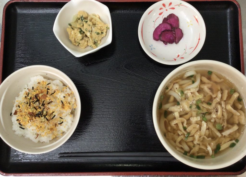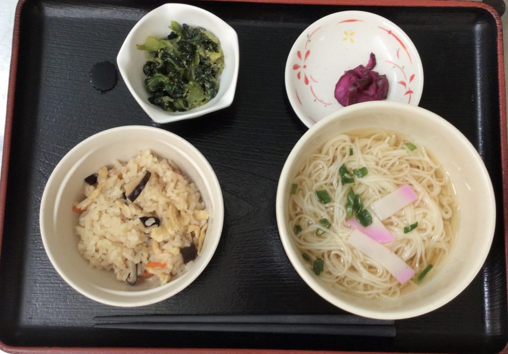 【昼食】 1.米飯 2.きざみそば 3.小松菜煮浸し 4.漬物