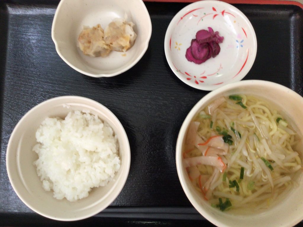 【昼食】 1.米飯 2.あんかけ焼きそば 3.ポテトサラダ 4.漬物 5.すまし汁