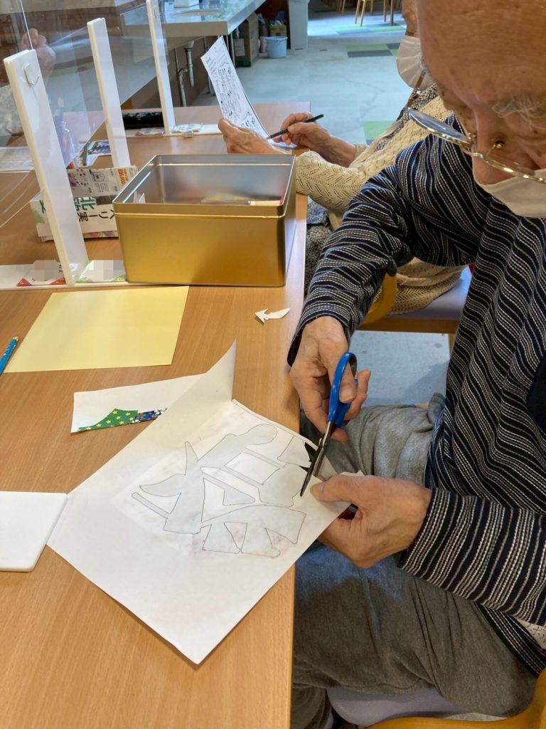 名前から一文字選んで、その型を鉛筆でなぞり、はさみで切っていくのですが、文字によって難易度高め・・・🙄💦