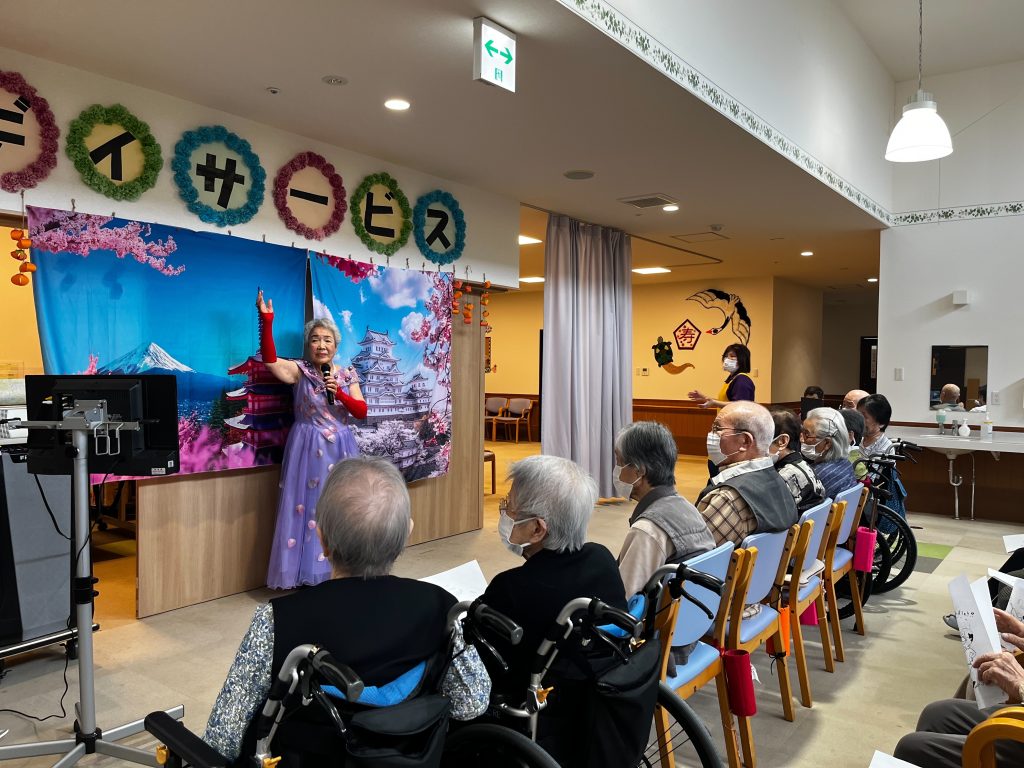利用者様とスタッフもお手伝いさせていただき、大変盛り上がったところで、次は鈴村八映子様歌謡ショー🤗🎤