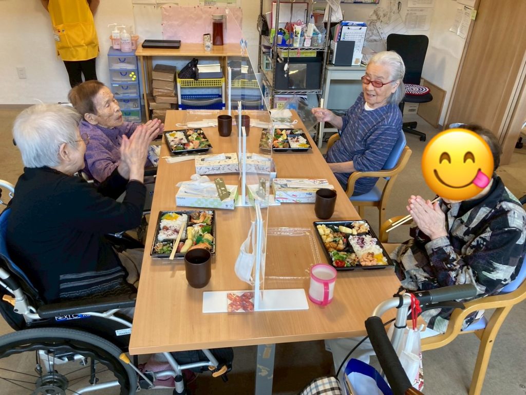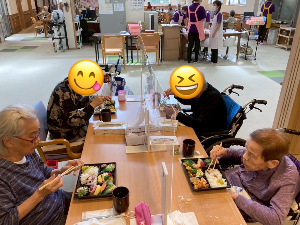 天ぷら、エビフライ、炊き合わせ、果物まで入ったボリューム満点💮のお弁当で、皆さまいつも以上にお腹いっぱいまで召し上がっていました🥰🦐