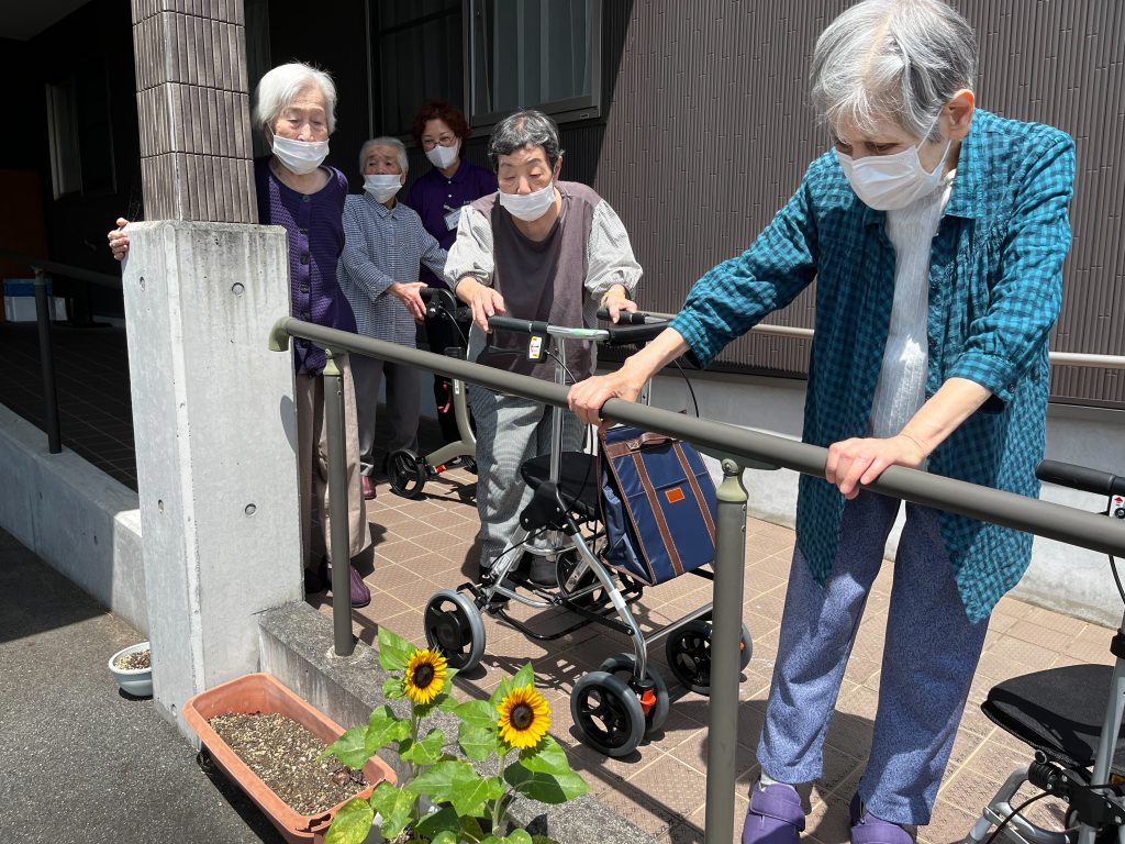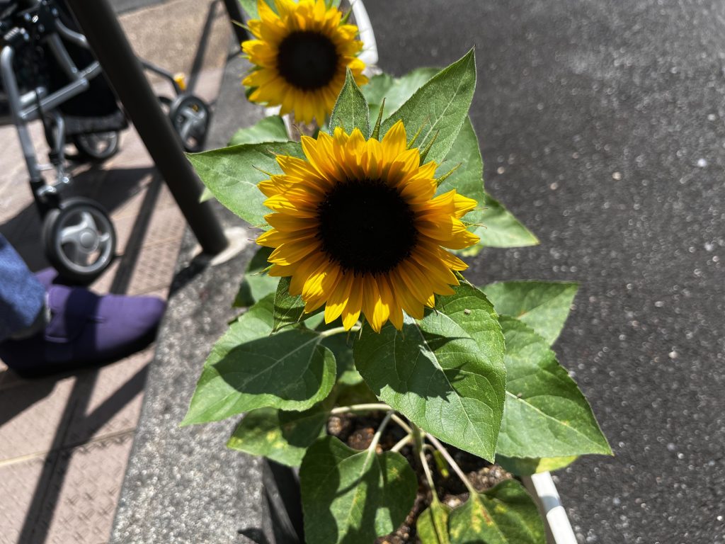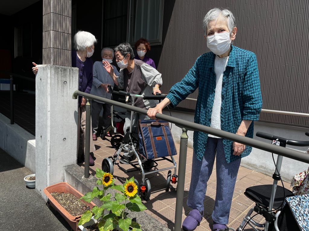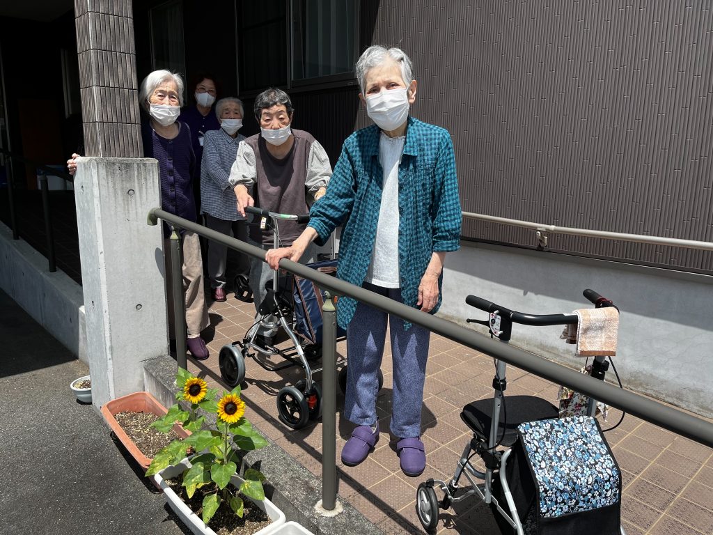 一人の方がひまわりが咲くのをまだかまだかと楽しみにされていたので、近くにいた方々を誘って玄関先へ見に出ました🥰🌻