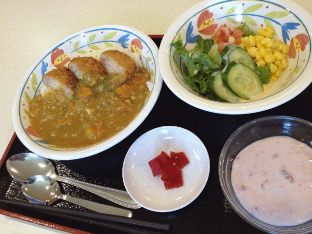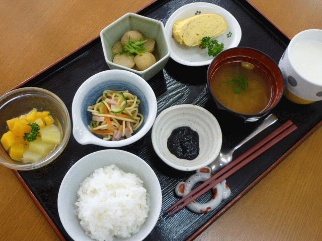 1.出し巻き 2.小芋の煮つけ 3.スパゲッティーサラダ 4.缶詰フルーツ