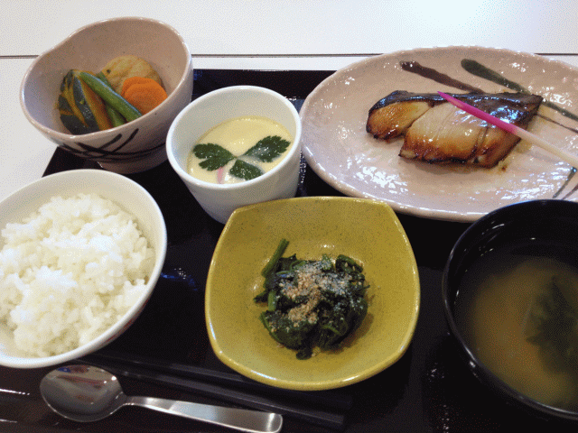 1.ブリの照り焼き 2.茶碗蒸し 3.ホウレンソウのおひたし 4.カボチャの煮込み