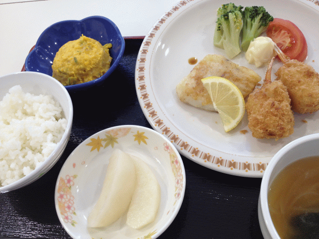 1.フライ盛合せ 2.栗きんとん 3.コンソメスープ 4.フルーツ