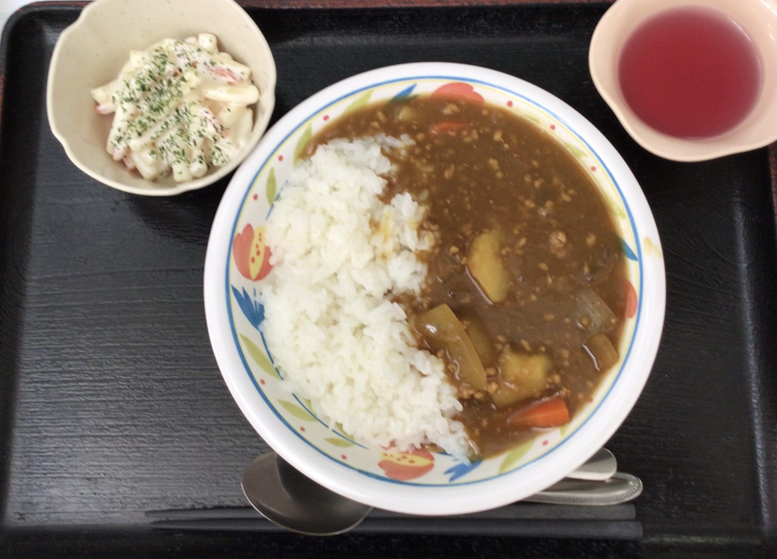 【昼食】 1.カレーライス 2.マカロニサラダ 3.手作りゼリー
