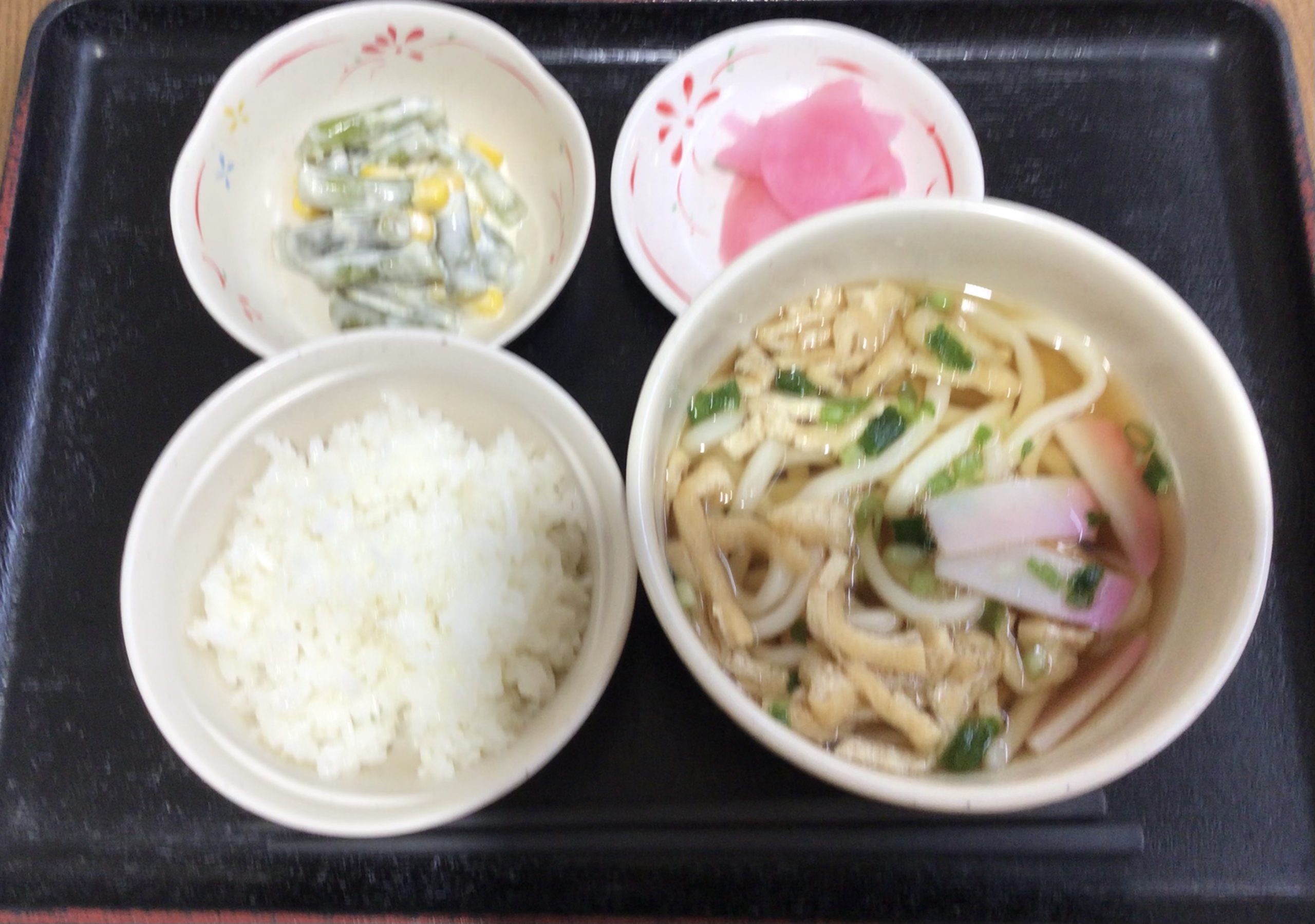 【昼食】 1.ご飯(小) 2.きざみうどん 3.いんげんのサラダ 4.漬物