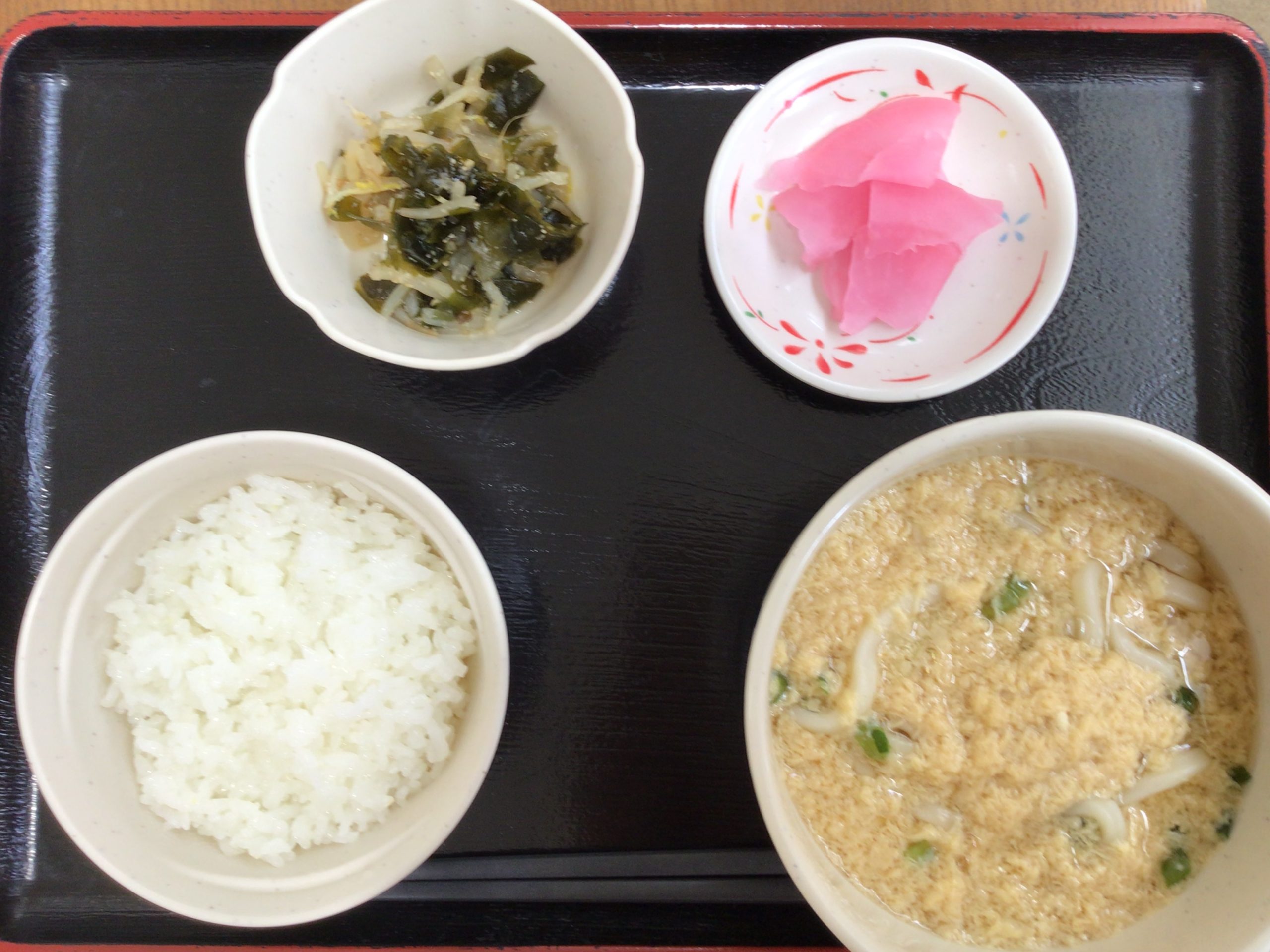 【昼食】 1.ご飯(小) 2.卵あんかけうどん 3.もやしの胡麻酢醤油 4.漬物