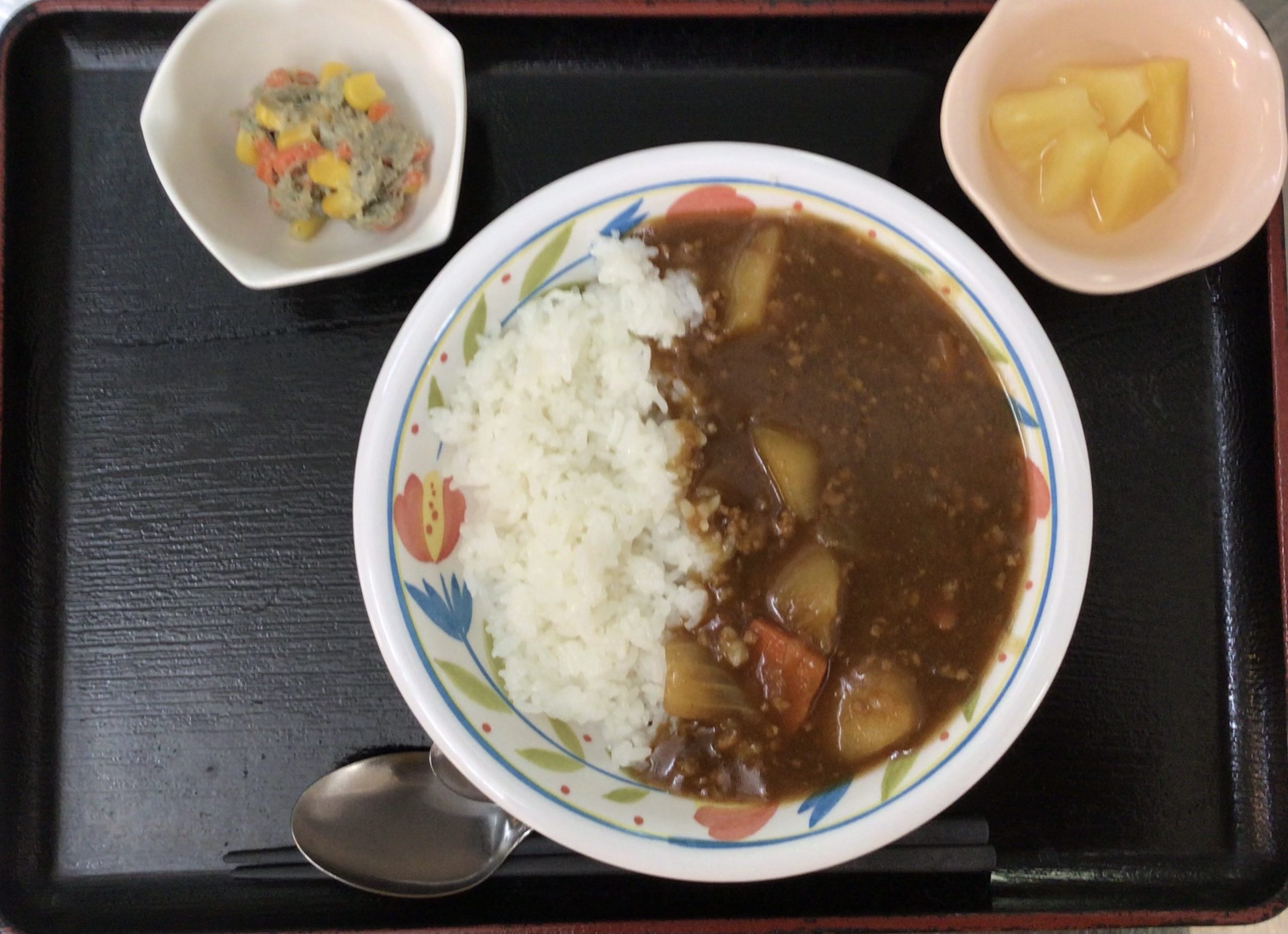 【昼食】 1.カレーライス 2.ごぼうサラダ 3.フルーツ缶