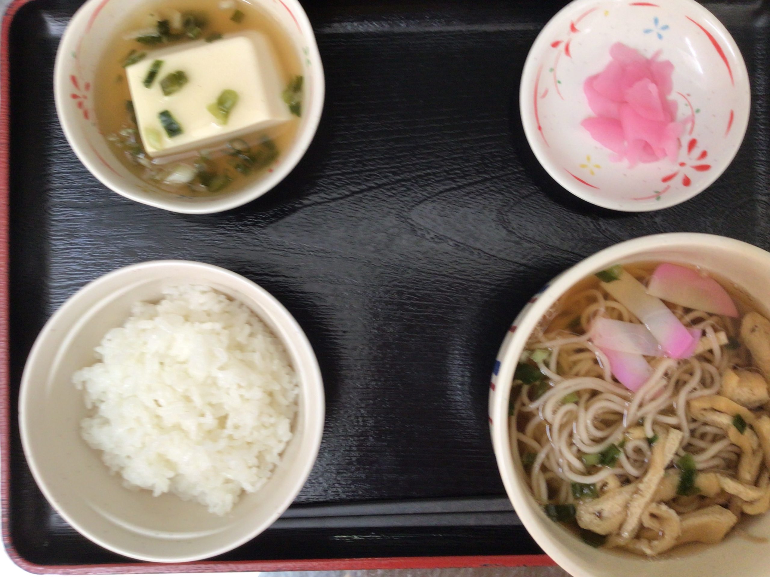 【昼食】 1.ご飯(小) 2.きざみそば 3.豆腐のあんかけ 4.漬物