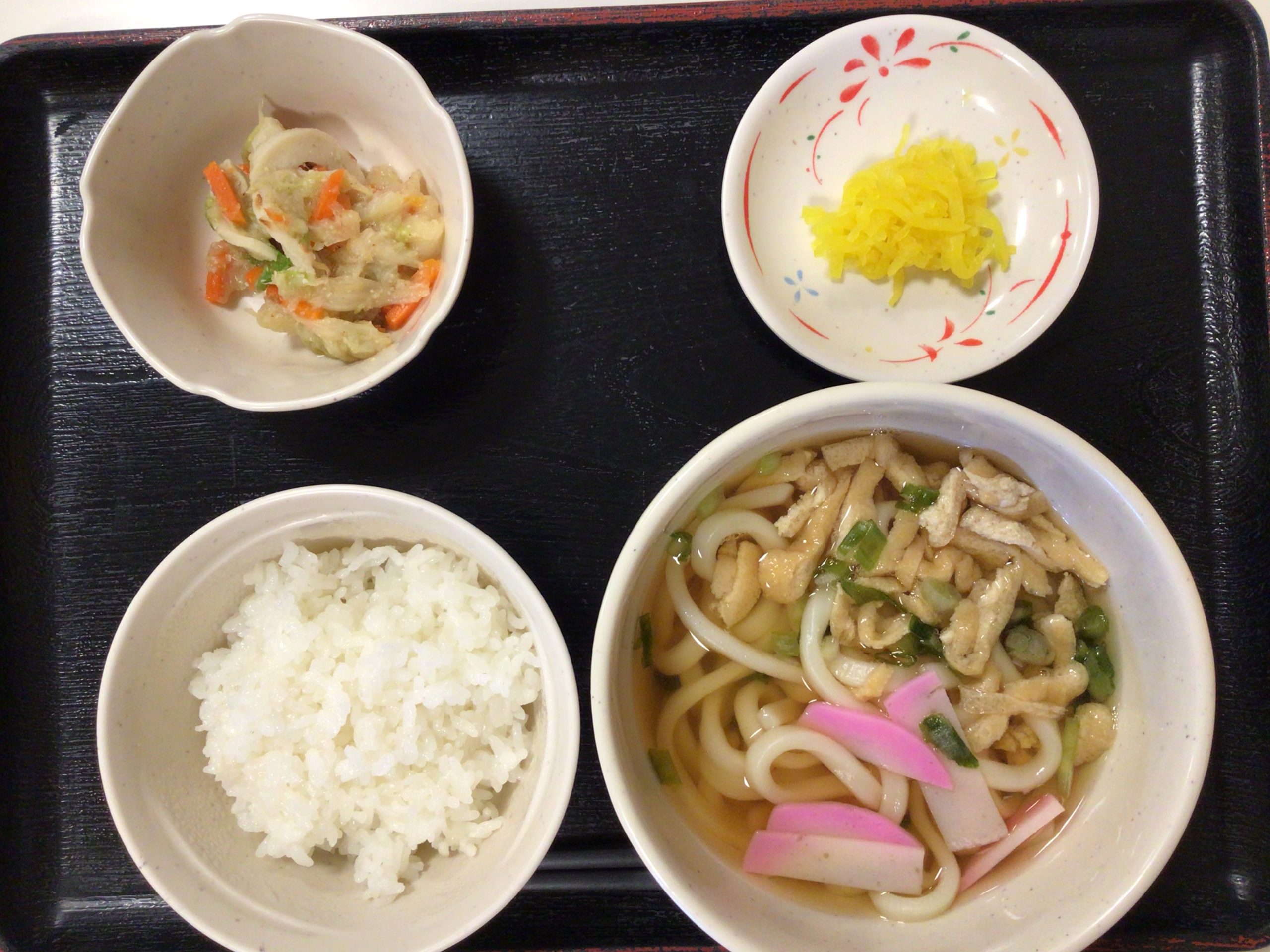 【昼食】 1.ご飯(小) 2.きつねうどん 3.白菜のごま和え 4.漬物