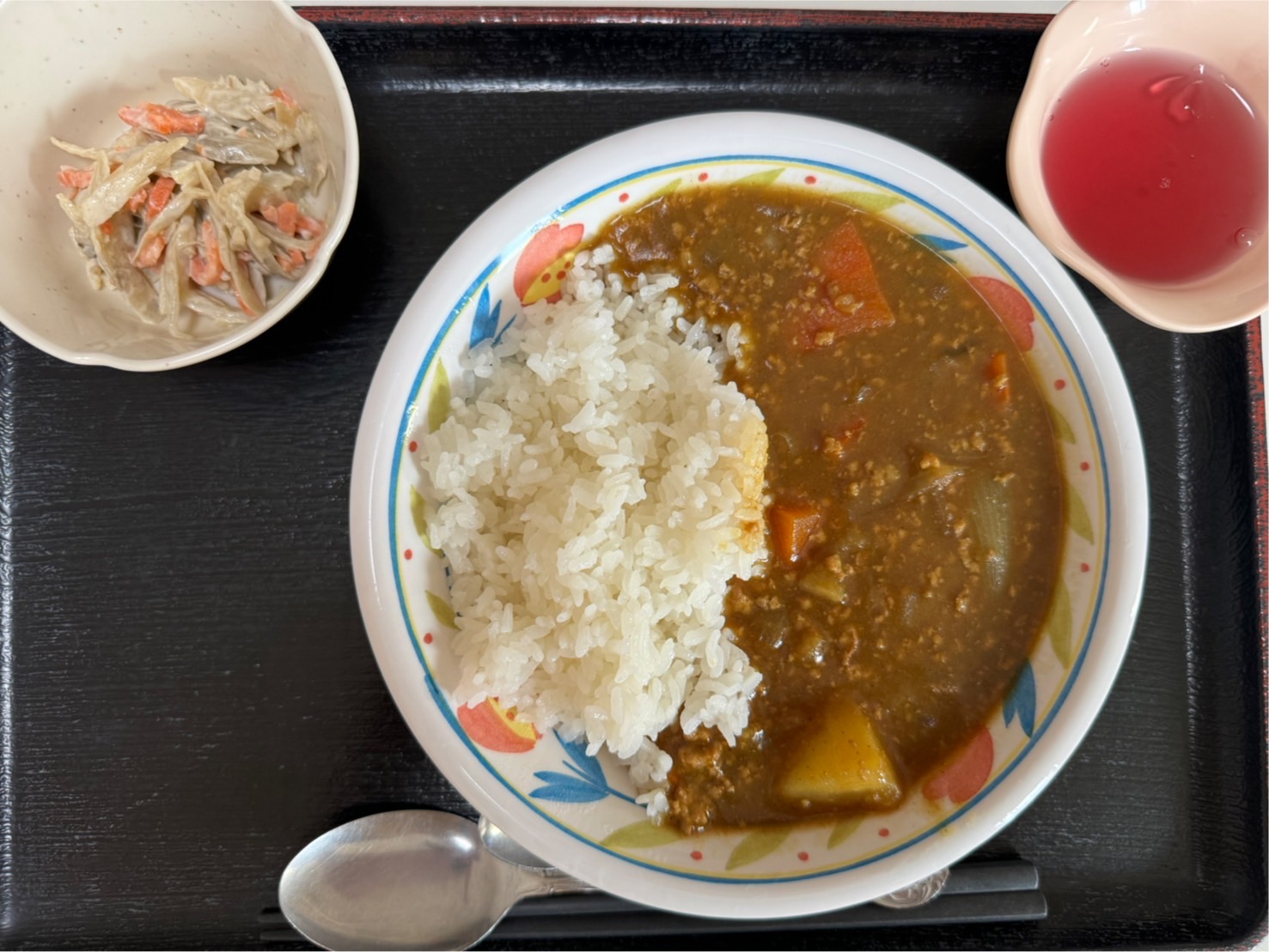 【昼食】 1.カレーライス 2.ごぼうサラダ 3.手作りゼリー
