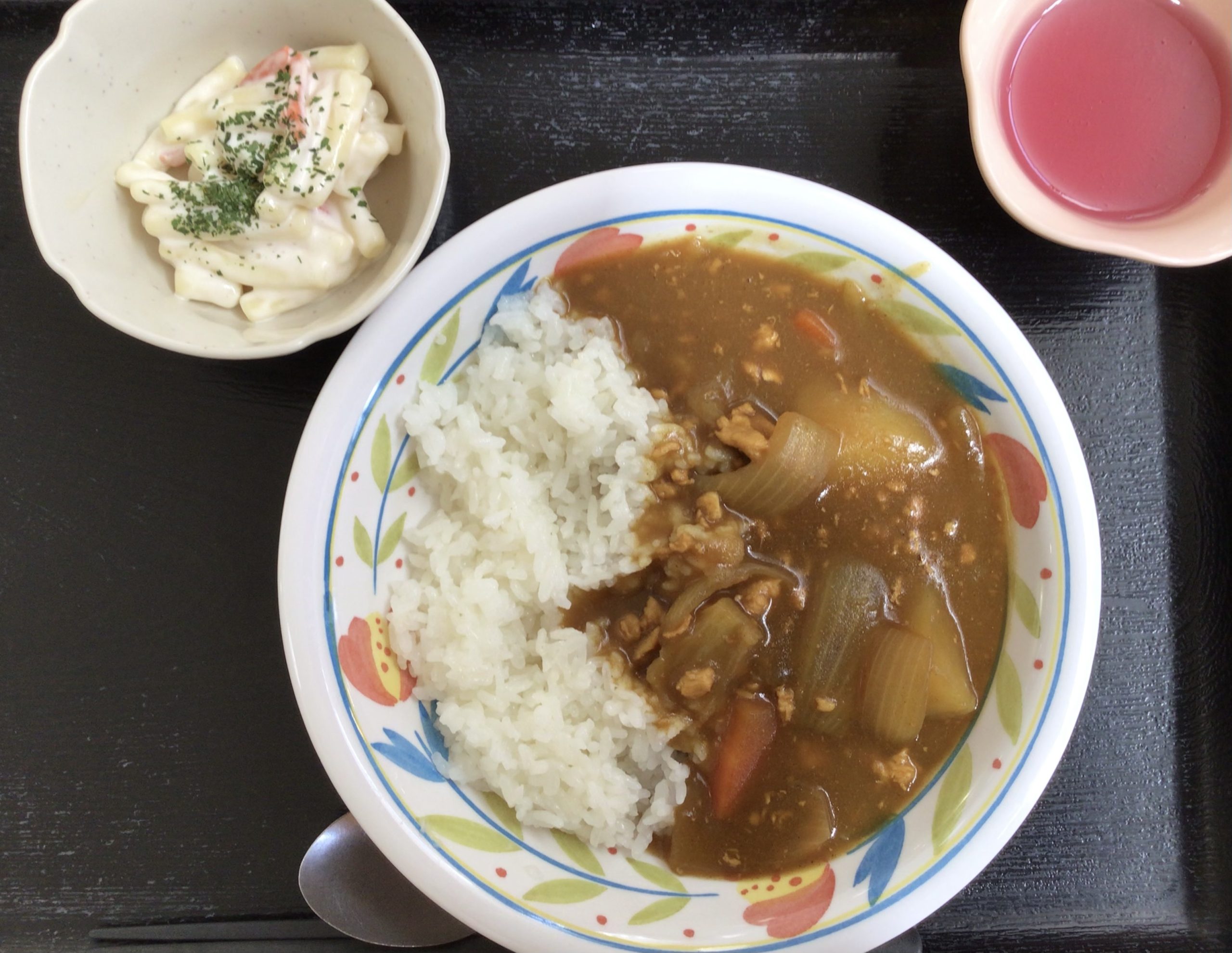【昼食】 1.カレーライス 2.マカロニサラダ 3.手作りゼリー