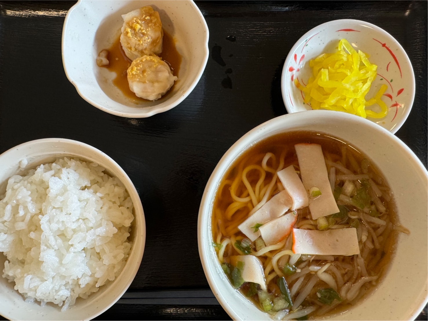 【昼食】 1.ご飯(小) 2.醤油ラーメン 3.蒸しシューマイ 4.漬物