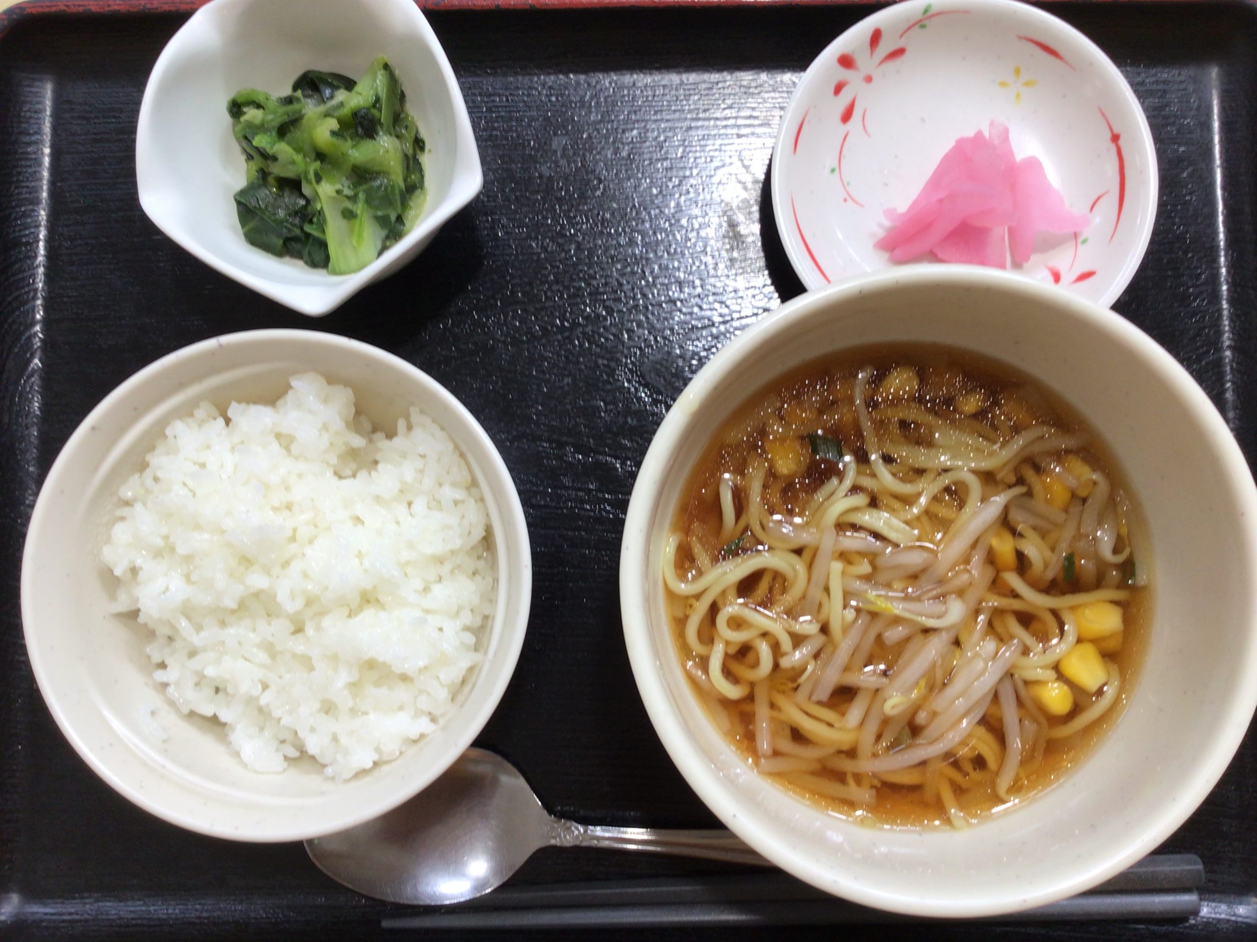 【昼食】 1.ご飯(小) 2.醤油ラーメン 3.青菜炒め 4.漬物