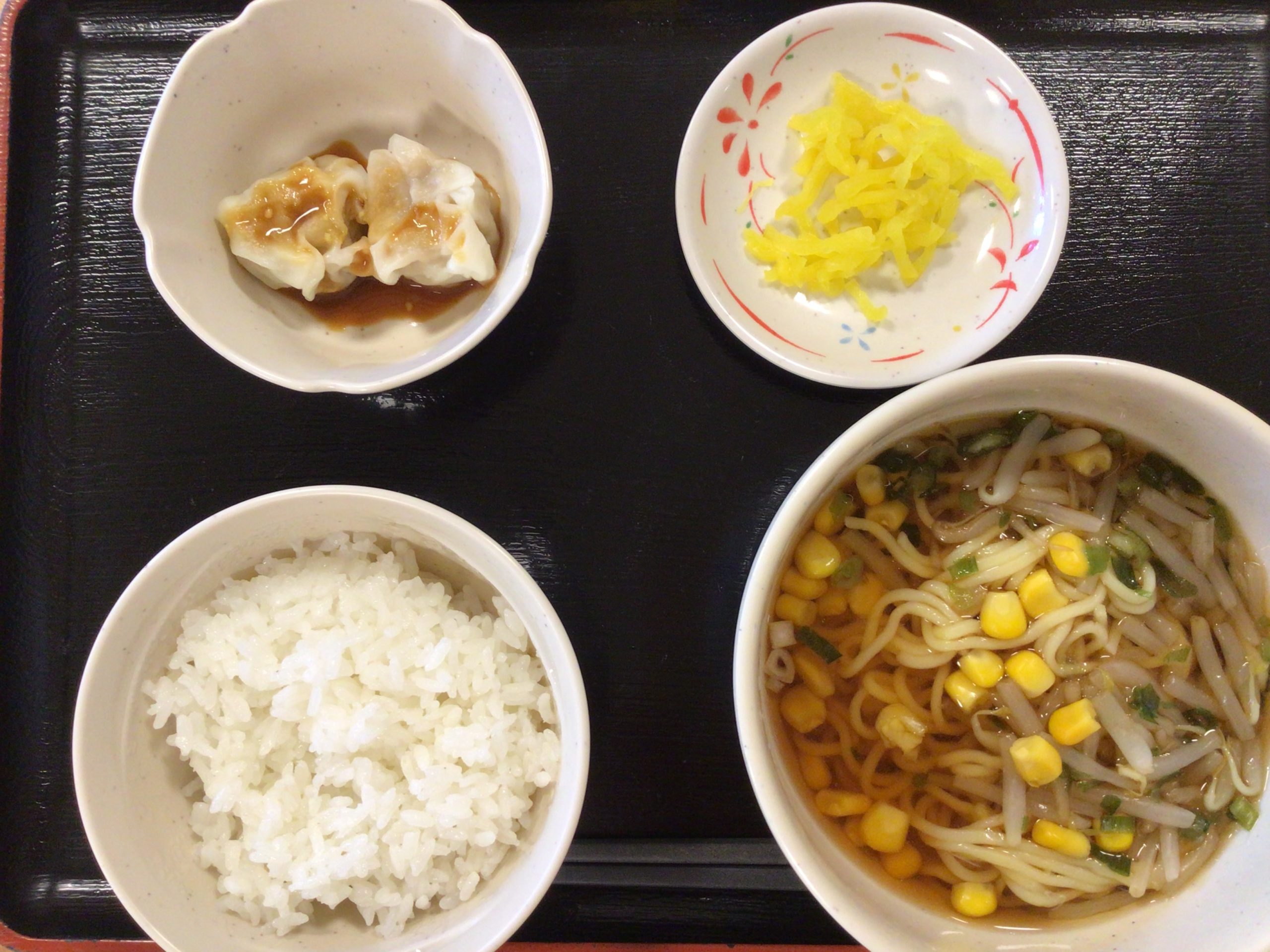 【昼食】 1.ご飯(小) 2.醤油ラーメン 3.蒸しシューマイ 4.漬物