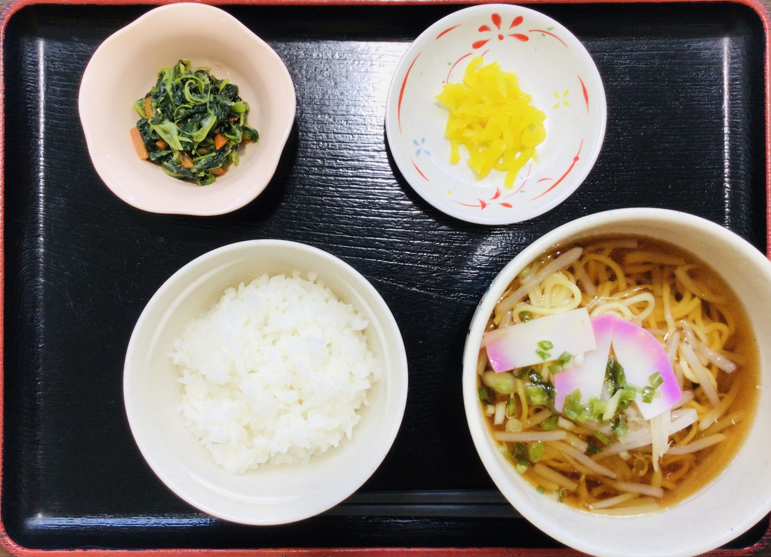 【昼食】 1.ご飯(小) 2.醤油ラーメン 3.ナムル 4.漬物