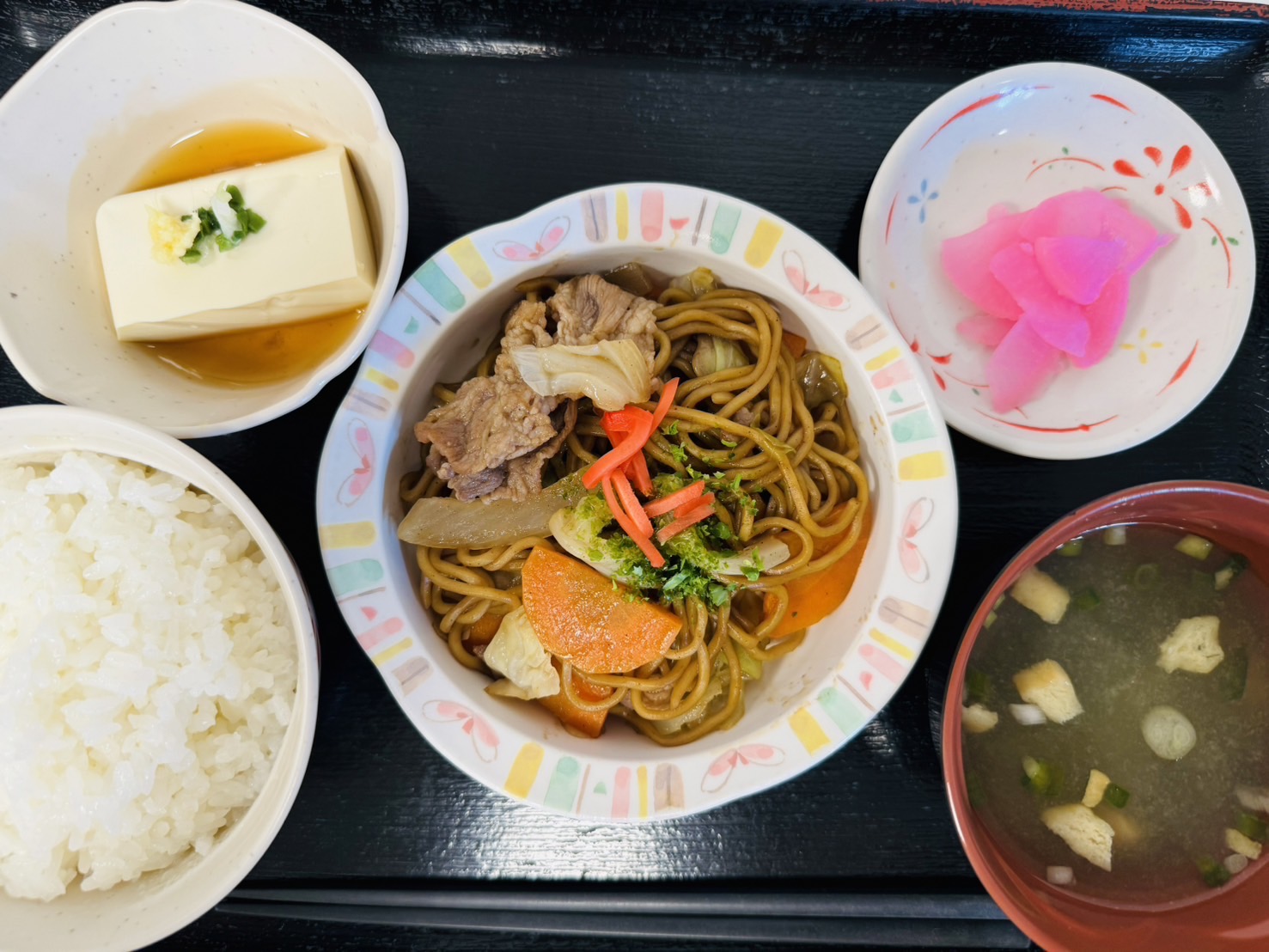 【昼食】 1.ご飯 2.焼きそば 3.冷奴 4.漬物 5.みそ汁