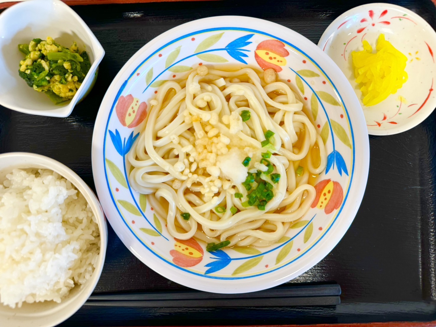 【昼食】 1.ご飯 2.ぶっかけおろしうどん 3.菜の花のなたね和え 4.漬物