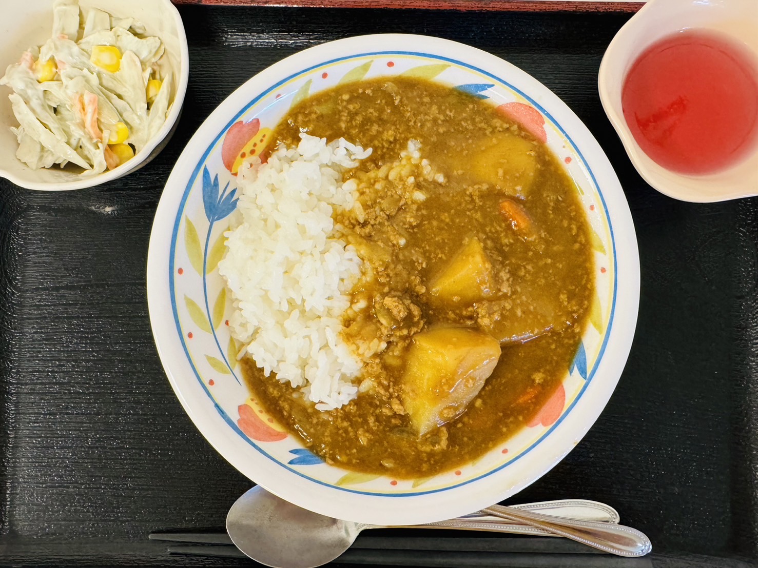 【昼食】 1.カレーライス 2.ごぼうサラダ 3.手作りゼリー