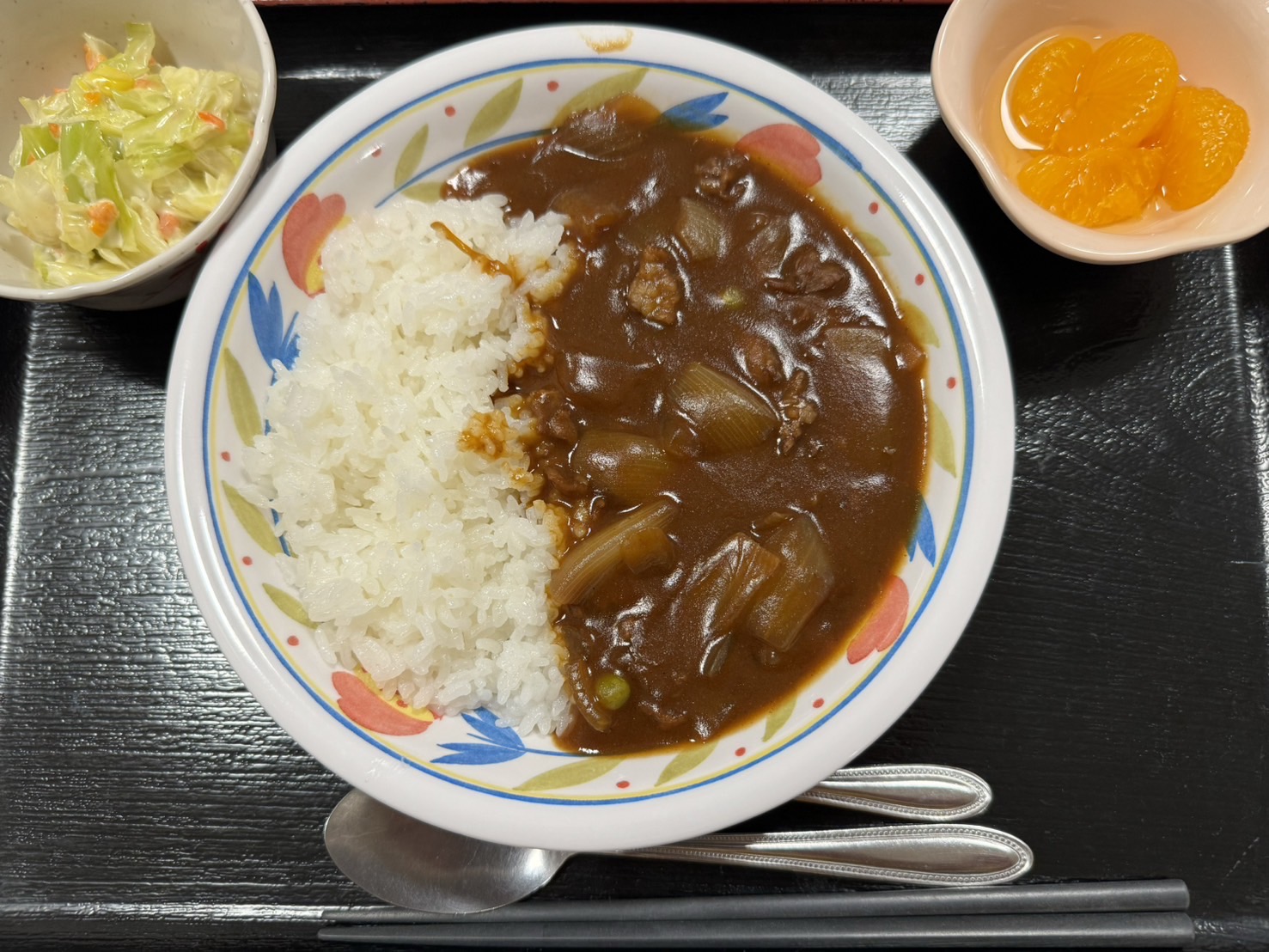 【昼食】 1.ハヤシライス 2.コールスローサラダ 3.フルーツ缶
