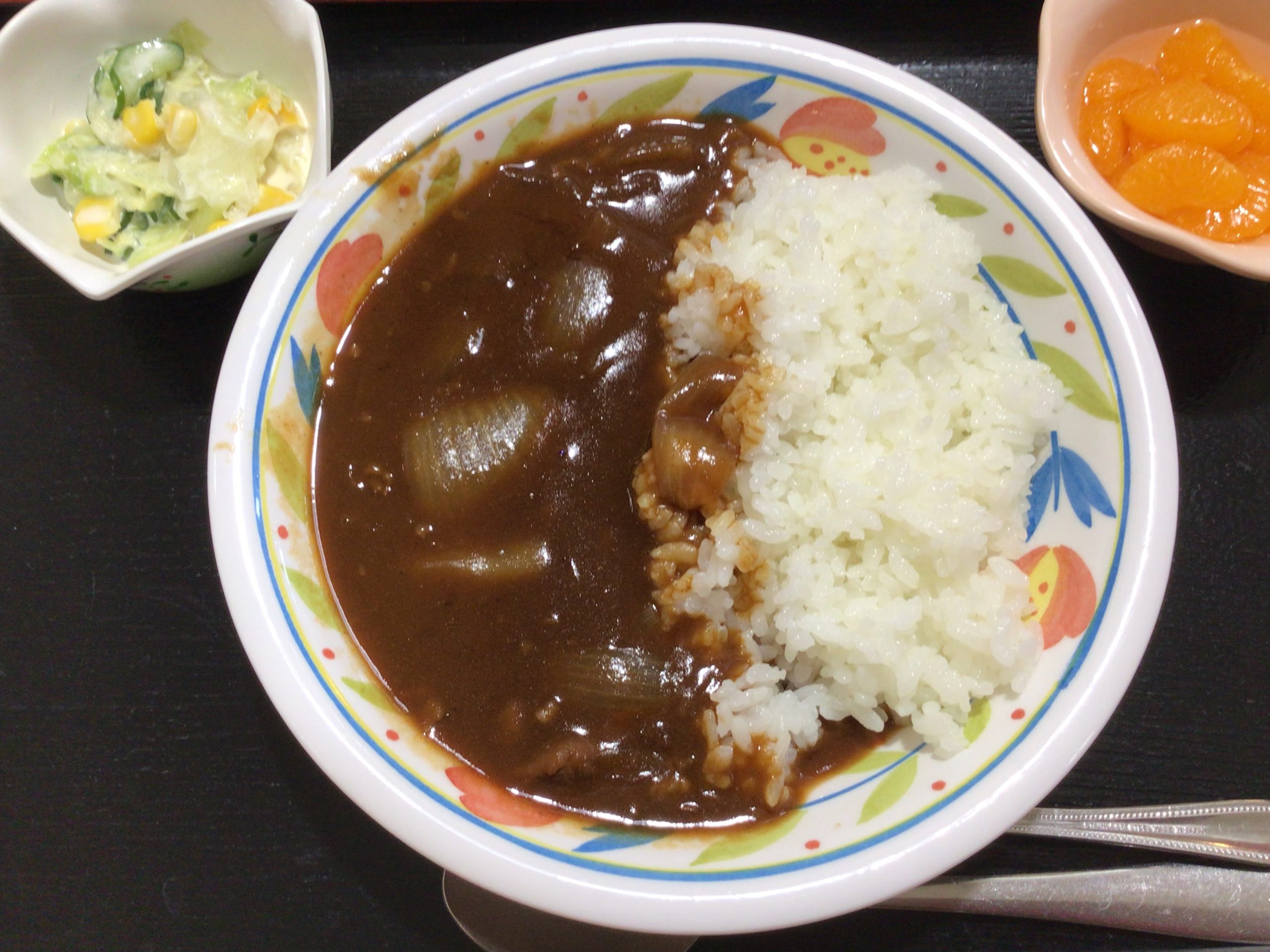 【昼食】 1.ハヤシライス 2.コールスローサラダ 3.フルーツ缶
