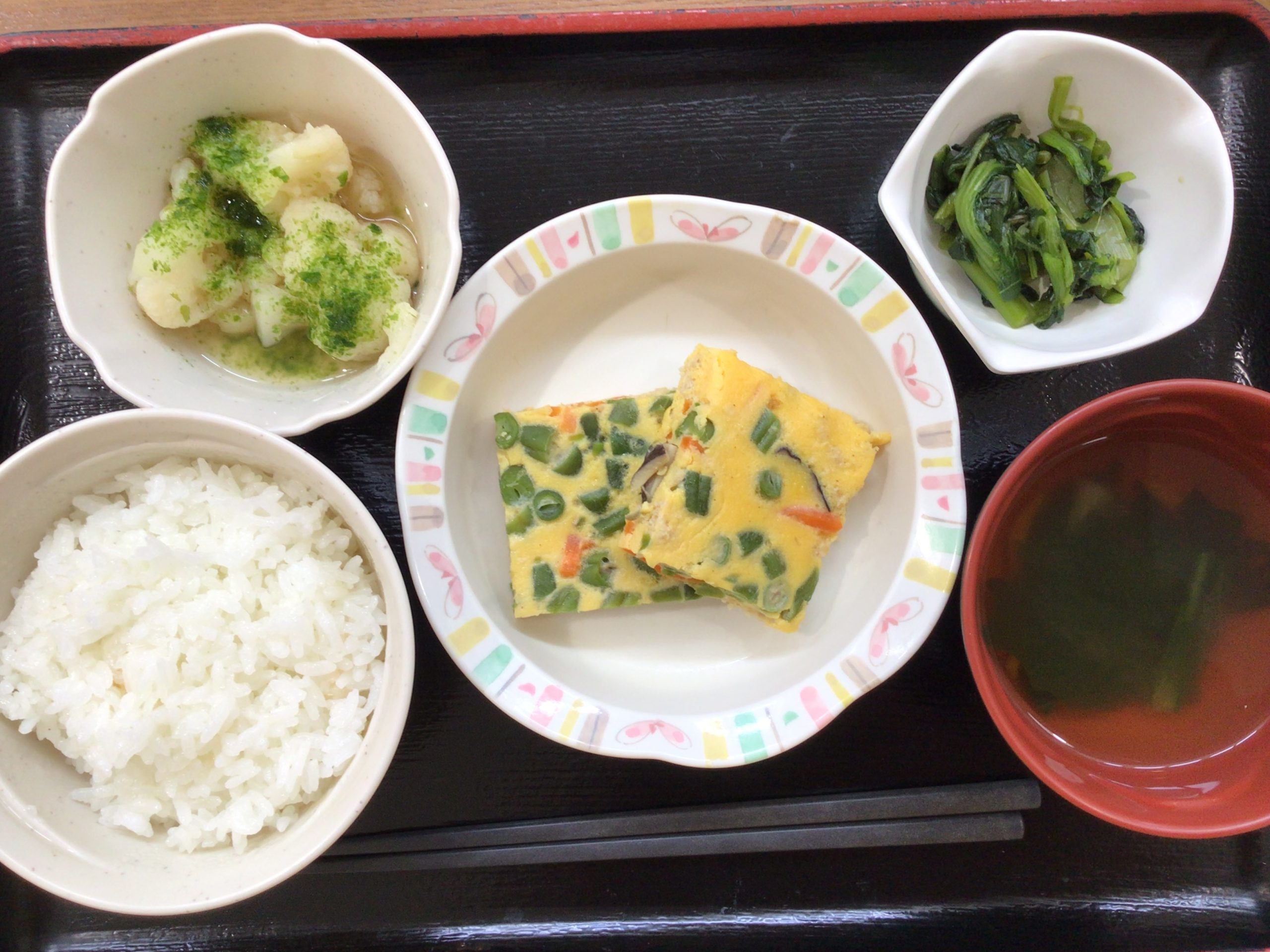 【昼食】 1.ご飯 2.千草焼き 3.カリフラワーのりまぶし 4.小松菜お浸し 5.すまし汁